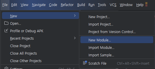file -> new -> new module 선택
